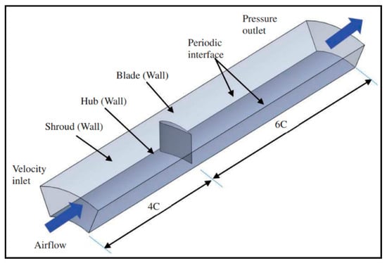 The Wells turbine has a symmetrical geometry, with the blades arranged circumferentially equally apart. Therefore, we limited our analysis to one blade passage with periodic boundary conditions, as illustrated in