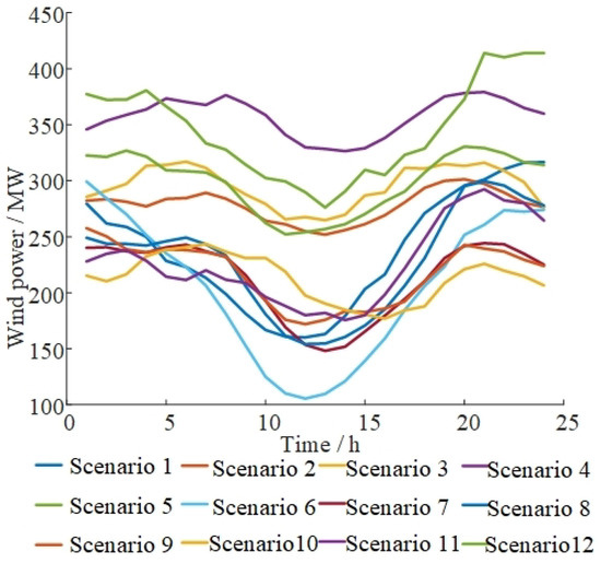 Wind power curves of typical scenarios.