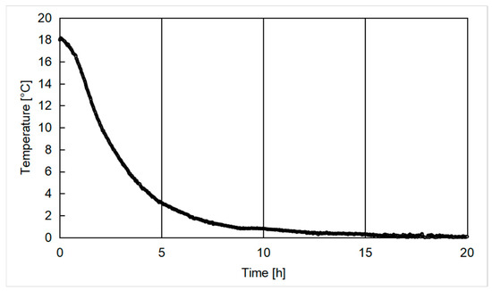 CO2 was injected within the reactor at temperatures elevated enough to completely avoid the production of hydrates during this step. The injection channels were then closed, and the reactor started working in batch conditions. During the formation phase, the internal temperature was gradually lowered. Its decreasing trend can be inferred from Figure 4.
