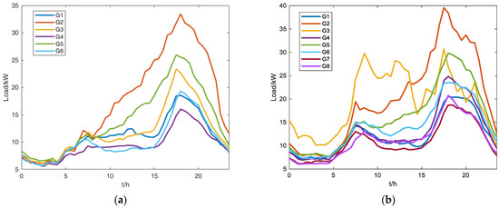 Clustering plays an important role in the preprocessing stage of deep-learning load forecasting methods. They enhance load forecasting accuracy by grouping similar load behaviors and providing categorizing conditions, leading to forecasting each load pattern separately. Various clustering algorithms are utilized in load forecasting to improve accuracy, such as K-means, C-means, and expectation maximization methods [19,20,21]. Clustering algorithms also benefit the performance of deep-learning load forecasting algorithms, such as graph neutral2 networks [22,23]. In [24], an optimal kernel function selection method is proposed for load forecasting, combining SVR and weighted votes. Although much research focuses on introducing clustering algorithms into deep-learning load forecast methods, the load behaviors of EV and DR programs with higher penetration require accurate recognition and forecasting.