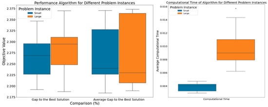 In this study, we have chosen to apply the MILP method to small instances, setting a time limit of 10,800 s for each run. However, for larger instances, the MILP method was not able to obtain solutions due to the pre-determined time limit. As a result, only the comparison between the Modified HSA and MILP in small instances is provided in this experiment. This decision stems from the understanding that in MILP, the computational time required to solve a problem increases exponentially with the number of nodes. Consequently, larger instances would demand significantly more time, extending beyond practical limits. In terms of computational time, our results clearly demonstrate the effectiveness of our proposed algorithm, as it obtained superior solutions in much less time.
