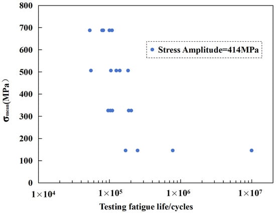 The results indicate that, even when the stress amplitude remains the same, different mean stresses can lead to significantly different fatigue life outcomes. It is thus evident that it is essential to correct the stress amplitude, as failure to correct it would result in a fatigue life prediction that differs significantly from the actual results. Of course, the same outcome would be observed when the mean stress is constant but the stress amplitude varies. Therefore, both stress amplitude and mean stress must be taken into account during fatigue life prediction. In the model fitting of this paper, although no correction was performed on the stress amplitude, a relatively satisfactory prediction result was still achieved. This is because the stress ratio used in this part of the test results was consistent; in other words, the variation in stress amplitude was aligned with the variation in mean stress. Therefore, to develop a fatigue life prediction model with good predictive performance, it is imperative to consider the impact of both stress amplitude and mean stress.