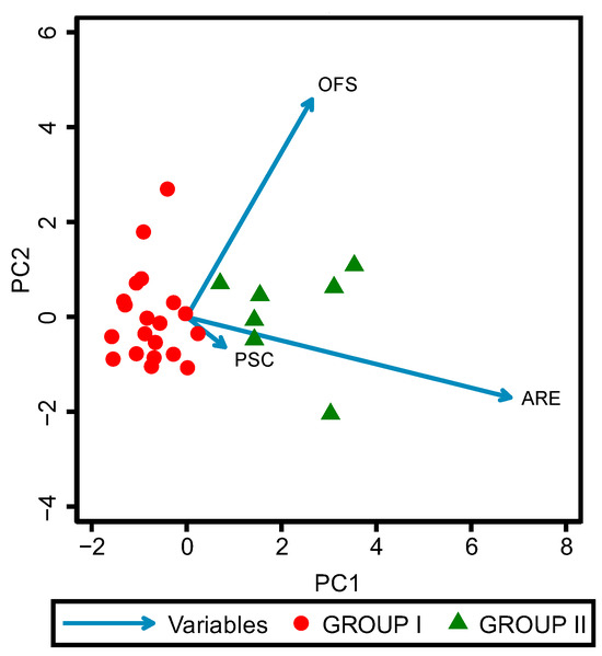 In the first phase of this study, countries were classified according to their level of development of organic farming. This was achieved through the utilisation of the Principal Component Analysis and k-means methods. The Principal Component Analysis method was employed to reduce the dimensionality of the investigated variables [73]. Given the nature of the variables, an analysis based on a covariance matrix was employed. Following this, clustering based on the k-means method was performed to distinguish between the two analysis groups.
