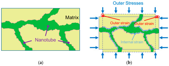 As observed in the creep deformation and gas seepage experiment, the permeability curve experiences a significant decrease even with a minor change in volume strain. Furthermore, the loading stress remains constant throughout the loading process, rendering the traditional effective stress-based permeability models unsuitable. To address this limitation, a new permeability model based on internal strain is introduced, as depicted in Figure 3. In this study, we define internal strain as the strain directly applied to the fracture or nanotube [60,61]. In essence, internal strain results from the mechanical interaction between the fracture and matrix and is pivotal in permeability evolution.