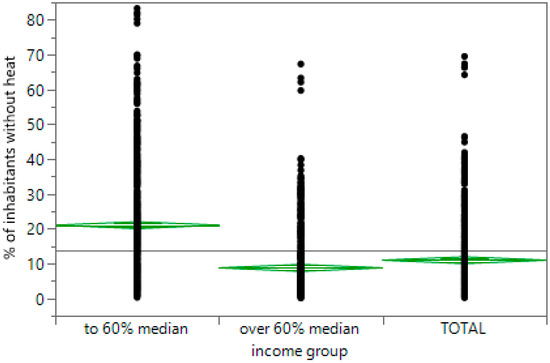 Analysis of Variance-income groups of inhabitants without heat [32].