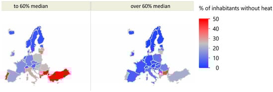 Energy poverty is also evaluated according to the inhabitants group (see Figure 5), following the percentage rate of inhabitants with heat shortage from the category of low-income inhabitants and the percentage rate of inhabitants with heat shortage from the category of high-income inhabitants.