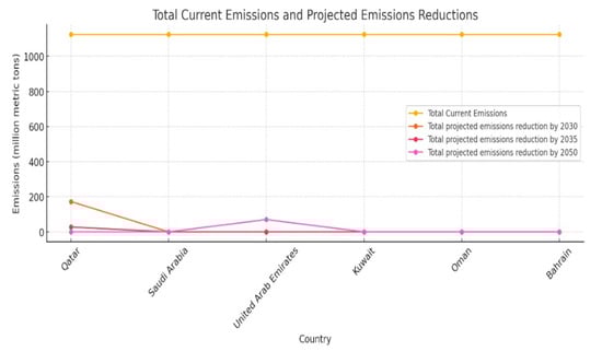 Based on information from the IEA, we collected data on greenhouse gas (GHG) emissions to calculate emissions for the GCC countries and provide a techno-economic analysis. We present the data in tables that contain information about Total GHG emissions, emission forecasts with the reforms, and the costs of the reforms for the six GCC countries. The calculations provide a high-level overview of the investments and projected emissions reductions for each country based on their respective climate action plans and strategies.
