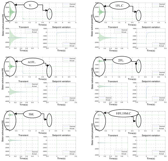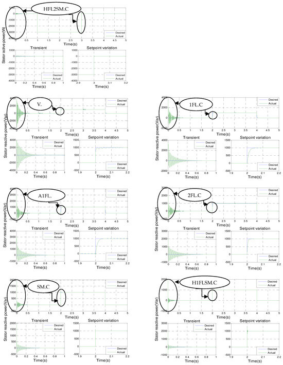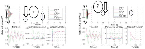 Figure 11 shows the simulation results of active and reactive stator powers for the seven controls in a single zoomed view.