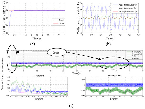 Figure 9 shows the simulation results of DC bus voltage, current with main voltage, and the active and reactive stator powers with a zoom.