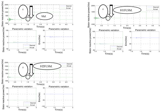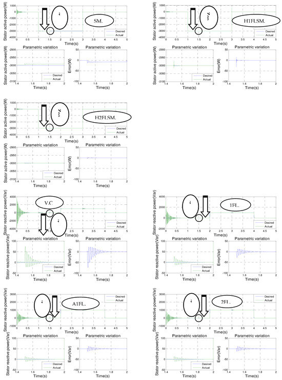 Drawing from the simulation findings, it can be observed that the active and reactive powers for all seven types of control consistently follow their new references. However, it is evident that hybrid type-2 fuzzy sliding mode control outperforms the other control methods in terms of effectiveness and performance, with almost smooth power curves at the points of parametric variation of the machine.