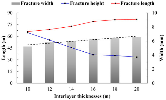 Presentation of the calculation results of hydraulic fractures under different interlayer thicknesses.
