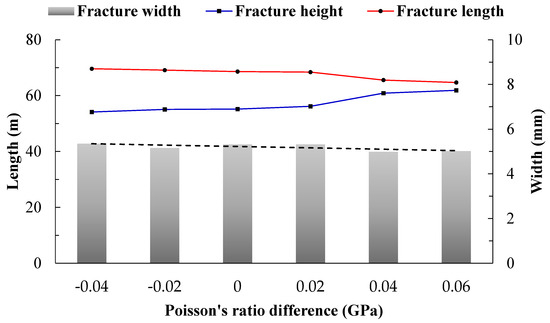 Display of the computed results of hydraulic fractures under different contrasts in Poisson’s ratio between the barrier and reservoir layers.