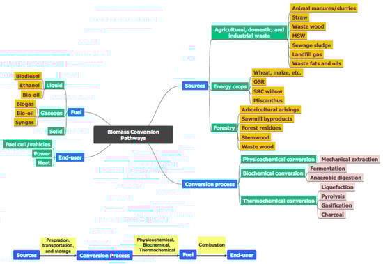 Greenhouse gas (GHG) emissions and the associated rise in global temperatures pose significant risks to living organisms. The use of fossil fuels for power generation is a major contributor to climate change. Consequently, renewable energy sources are increasingly sought as a sustainable alternative for a healthier environment. Biomass utilization is superior to other renewable sources, given the former’s reduced dependency on location and climate, as well as ease of accessibility [1,2]. Additionally, biomass can be stored and transported easily and represents roughly 10% of the world’s total basic energy supply today [3,4]. As a promising energy source, biomass is also preferred in underdeveloped countries for daily life necessities like heating and cooking [5]. According to the International Energy Agency (IEA), it is projected that 2.4 billion people will use biomass for cooking by 2030 [6]. On the other hand, developed countries use biomass as a renewable and sustainable energy source to improve environmental outcomes [5].