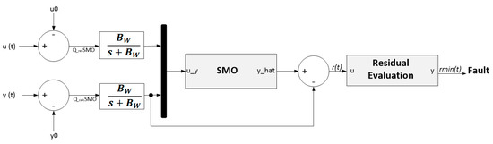 In this section, the proposed strategy for the design of the sensing fault detection system is presented. This strategy is designed using an optimal estimation system based on the system model. For this purpose, a Sliding Mode Observer (SMO) is implemented with the aim of establishing a residue generation system from the difference between the estimated value of the variable and its sensed value at the input of the Control System (CS).