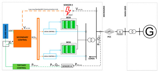 - Sardashti, A.; Ramezani, A. Fault tolerant control of islanded AC microgrids under sensor and communication link faults using online recursive reduced-order estimation. Int. J. Electr. Power Energy Syst. 2021, 126, 106578. [Google Scholar] [CrossRef]