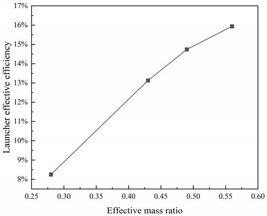 - The launcher effective efficiency increases with the growth of the effective mass ratio, and the launcher effective efficiency improves from 7.91% to 17.17% when the effective mass ratio rises from 0.28 to 0.56. The average increment of the launcher effective efficiency is 8.24% under different cross-section geometrical parameters.