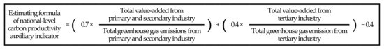 Auxiliary indicator estimating formula of national-level carbon productivity.