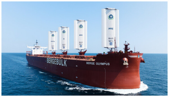 - Available online: https://www.prnewswire.com/news-releases/berge-bulk-unveils-the-worlds-most-powerful-sailing-cargo-ship-301955875.html (accessed on 16 October 2023).