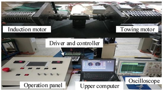 The experimental platform as shown in Figure 11 was established to verify the proposed modulation scheme; the models with their parameters or part numbers are listed in Table 1. The DC voltage was supplied by the power supply (PR300-4, MATSUSADA, Shiga, Japan). The three-phase current was detected by the current sensors (MLX91205, MELEXIS, Ieper, Belgium), the speed was detected by the encoder, and the inverter bridge consisted of six IGBT modules (IPB042N10N, Infineon Technologies, Neubiberg, Germany, turn-on time is 1.4 μs, turn-off time is 2.5 μs). The control and modulation algorithm was implemented by the digital signal controller (TMS320-F28035, TEXAS Instruments, Dallas, TX, USA); the switching frequency was 10 kHz.