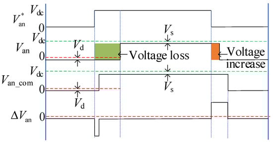 As shown in Figure 3, the sources of nonlinear voltage error are divided into three aspects: the addition of dead-time, the switching delay of the switching tube, and the conduction voltage drop. The voltage error analysis of the specific switching process is as follows: