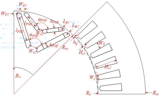 Motor design optimization is a general means to improve motor performance and enhance robustness. For PMSMs, due to the pursuit of excellent performance and meeting various demanding requirements, it is necessary to design complex topologies and a large number of geometric variables to build motor models [18].