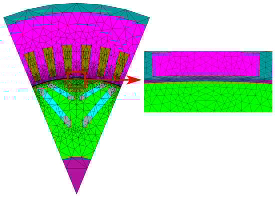 For the optimization of PMSMs, one strategy is based on the calculation method of the Magnetic Equivalent Circuits (MEC) model, but this method has a problem in calculating nonlinear parameters [19]. FEA, combined with optimization algorithms, can avoid this problem.