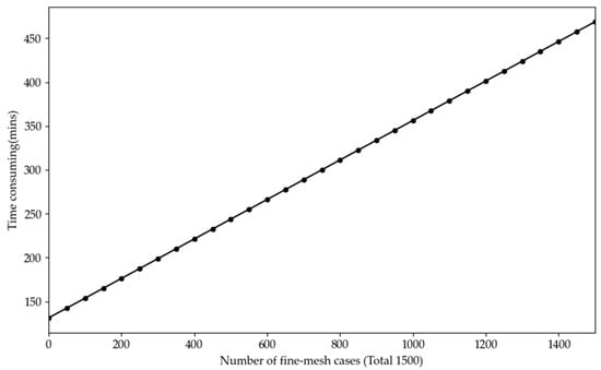 Time consumption of different numbers of fine mesh cases (total 1500 cases).