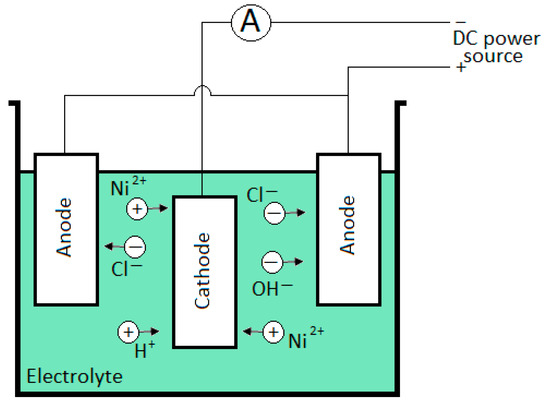 - Oriňáková, R.; Turoňová, A.; Kladeková, D.; Gálová, M.; Smith, R.M. Recent Developments in the Electrodeposition of Nickel and Some Nickel-Based Alloys. J. Appl. Electrochem. 2006, 36, 957–972. [Google Scholar] [CrossRef]