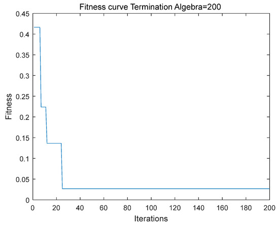 Xiong et al. proved that IMGM (1, n) model had better performance than the MGM (1, n) model. To compare the advantage of the improved MGM (1, n) model, the data sequences (Data sequence A) and (Data sequence B) [27] were chosen as examples. For these data sequences, the first seven data were used for in-sample data to evaluate the simulation precision, while the other data would be used as out-of-date to evaluate the prediction performance. Here, the number of iterations and the population size are 200 and 20, respectively. The inertia weight is 1; the values of acceleration data are 0.9 and 0.9, respectively. Figure 2 shows the fitness cure of the improved MGM (1, 2). The results show that when the number of iterations reaches 20, the fitness function reaches its minimum value and the iteration stops. The IMGM (1, n) model and MGM (1, n) model were employed to compare the effectiveness of the improved MGM (1, n) model. The MAPEs and root-mean-square errors (RMSE) for in-sample and out-sample of these models for data sequences A and B are compared in Table 1, Table 2 and Table 3.