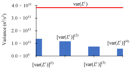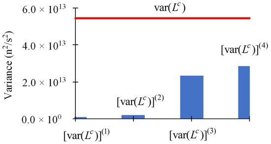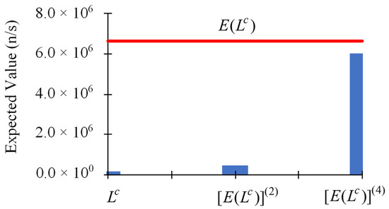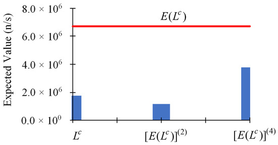 When considering uniform relative standard deviations of 10% for the uncorrelated and normally-distributed parameters (total cross sections), it has been shown in [12] that the ratio of the 3rd-order term with respect to the 2nd-order term of the Taylor series is 1.93; the ratio of the 4th-order term with respect to the 3rd-order term of the Taylor series is 2.26. Both of these results are larger than 1.00, indicating that the Taylor-series presented in Equation (1) would be divergent if used for parameters having standard deviations of 10%. The divergence of the Taylor-series for such parameter standard deviations is underscored by the corresponding results depicted in Figure 5 for the expected value, , of the computed leakage response, which clearly indicate the massive increase of the contributions to as the order of the retained terms increases. The conclusion that the Taylor-series expansion is divergent and should therefore not be used for parameters with uniform relative standard deviations is reinforced by the corresponding results depicted in Figure 6 for the variance, , of the computed leakage response. Figure 6 also highlights that the contributions to increase massively as the order of the retained terms increases.