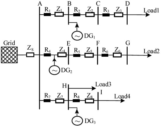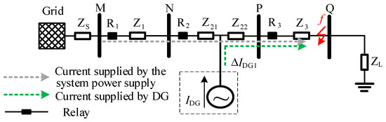 Under the dual challenges of surging energy demand and environmental concerns, nations globally are placing significant emphasis on advancing distributed generation energy supply technologies. In recent years, distributed generators (DGs), mainly based on photovoltaic power generation and wind power generation, have been developed rapidly [1]. The new distribution network after connecting to a DG becomes a multi-terminal power supply form, resulting in a change in the size and direction of the short-circuit current. As a result, fault-handling schemes designed for the original conventional network cannot match well with it, thus disrupting the coordinated operation between protection devices. Multi-DG grid connection brings potential challenges while relieving the pressure on resources and the environment, especially in the field of relay protection [2,3,4]. With the increasing capacity of DGs in the grid, the impact of the extra current generated on relay protection cannot be ignored.