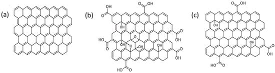 The structure of graphene and its various derivatives: (a) pristine graphene lattice; (b) graphene oxide; and (c) reduced graphene oxide [19]. Reproduced with permission.