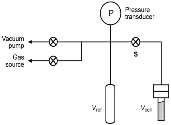 Schematic diagram of a typical Sieverts apparatus, wherein Vcell is the volume of the cell containing the sample material and Vref is the volume of the reference cell [71]. Reproduced with permission.