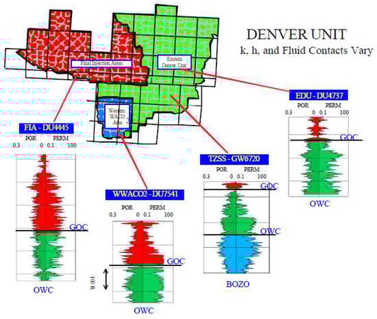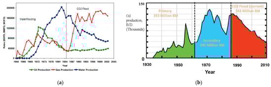 - Ghauri, W.K. Production Technology Experience in a Large Carbonate Waterflood, Denver Unit, Wasson San Andres Field. J. Pet. Technol. 1980, 32, 1493–1502. [Google Scholar] [CrossRef]