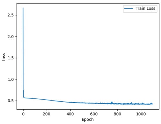 The training process, where there is a decrease in the error in terms of Binary Cross Entropy [52] at each training epoch, is shown in Figure 4. When training a neural network, the error decreases at each iteration. The number of iterations was chosen empirically when the required degree of learning was achieved.