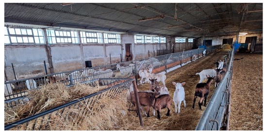 This is in accordance with the “Action program aimed at reducing water pollution with nitrates from agricultural sources and preventing further pollution”, which is an annex to the Regulation of the Council of Ministers of 12 February 2020 []. The annex contains average annual production volumes of natural fertilizers and the concentration of nitrogen contained in them depending on the species of farm animal, including goats, its age and efficiency, and the housing system. Table 5 contains data on the amount of manure and nitrogen (N) content for goats whose housing system is deep litter.