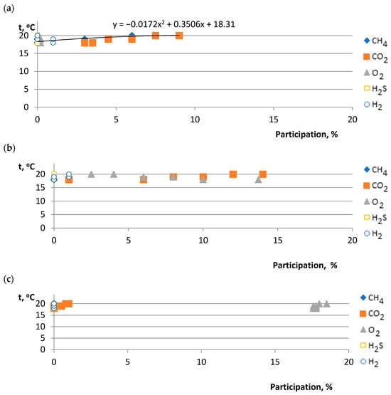- The course of changes in individual biogas components depending on the temperature and time of biogas production.