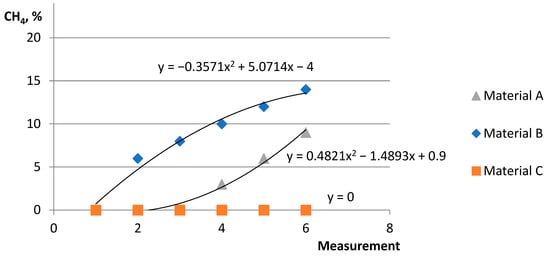 The fourth and last phase in the biogas formation process is the methane phase. Methanogenesis is the last stage of the methane fermentation process, in which most of the methane is produced as a result of the transformation of acetates and alcohols []. During this stage, methanogenic bacteria produce CH4 and CO2 using acetic acid and H2. Bacteria in this phase are most sensitive to environmental changes and disruptions in previous phases. Hence, efficient biogas production requires ensuring appropriate process conditions [].
