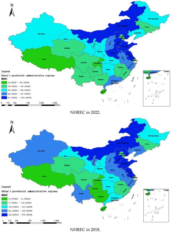 This study investigates the determinants of NHREC across 31 provincial regions in China from 2015 to 2022. By employing a fixed effects and moderating effects model, we analyze the impacts of research and development intensity (RDI), urbanization (UR), and human capital (HC) on NHREC. Additionally, the moderating roles of industrial structure (IS) and tax (TA) are examined, along with control variables such as informationization and economic development. The primary purpose of this study is to identify and quantify the key determinants of NHREC in China, with a specific focus on regional disparities. By understanding these determinants, the study seeks to inform policymaking and strategic initiatives aimed at promoting renewable energy consumption and achieving carbon neutrality goals. According to Tian et al. [24], China possesses sufficient wind and solar technological potential to support its vision of achieving carbon neutrality by 2060. However, these resources are unevenly distributed, predominantly concentrated in the western and northern regions, particularly in Xinjiang and Inner Mongolia, which together account for over 76% of the total technical potential for onshore wind and solar energy.
