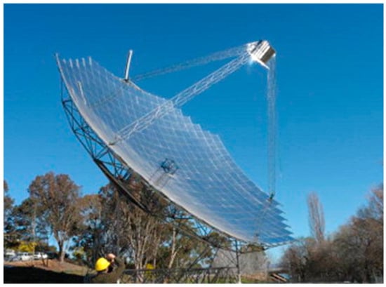 Picture of the 500 m2 paraboloid solar concentrator built by The Australian National University [15].