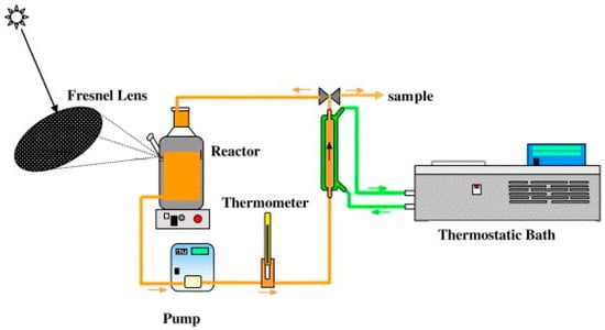 - Monteagudo, J.M.; Duran, A. Fresnel lens to concentrate solar energy for the photocatalytic decoloration and mineralization of orange II in aqueous solution. Chemosphere 2006, 65, 1242–1248. [Google Scholar] [CrossRef] [PubMed]