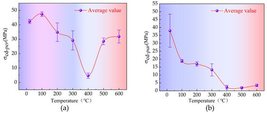 Within the temperature range of 20–600 °C, the initial stress of cracks, denoted as σci-per, displayed a “step-like” variation as the temperature increased when loading was in the direction perpendicular to the bedding planes (Figure 13a).