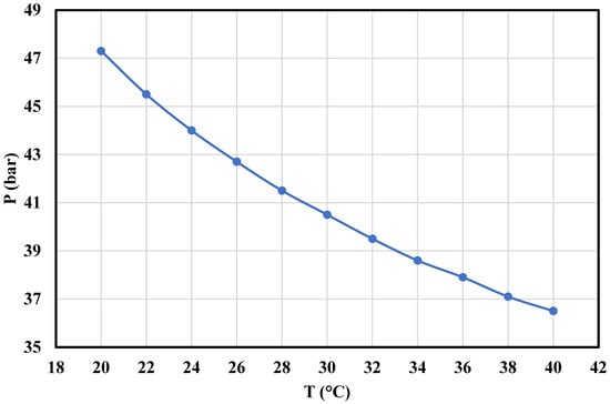 After cooling the solar PV cell, the hot water is fed to the reverse-osmosis system. The simulation study was performed to determine the effect of different feed temperatures on the performance and productivity of the system. Figure 10 shows the relation between feed pressure and feed temperature. It was found that the feed pressure was 47.3 bar at 20 °C. The pressure dropped with the increase in temperature, reaching 36.5 bar at 40 °C. Hence, the increase in feed water temperature tends to decrease the feed water pressure to the membrane system of reverse osmosis. Permeate TDS refers to total dissolved solids, which include ions and B(OH)3, but does not include NH3 and CO2. The relation between TDS and feed water temperature is shown in Figure 11. It was found that the TDS concentration increased with the increase in feed water temperature. At 20 °C, the TDS was around 40 ppm, and that value increased to 128.5 ppm at 40 °C. It was noted that a 64.8% increase in TDS was found when the water feed temperature increased from 20 °C to 40 °C. The specific electrical energy consumption to produce 1 m3 of distilled water is a very important parameter that must be calculated to differ between different methods of distilled water. The specific electrical energy drawn against different feed water temperatures is expressed in Figure 12. At 20 °C, the specific energy consumed was 3.55 kWh to generate 1 m3 of freshwater. That value decreased to 2.74 kWh with the increase in feed water temperature to 40 °C. The specific energy consumption decreased by 29.5% when the feed water temperature increased from 20 to 40 °C. It was concluded that with the increase in feed water temperature, the feed water pressure and specific energy consumption decrease while the TDS increases. Hence, the reverse-osmosis system needs hotter water to enhance its performance.