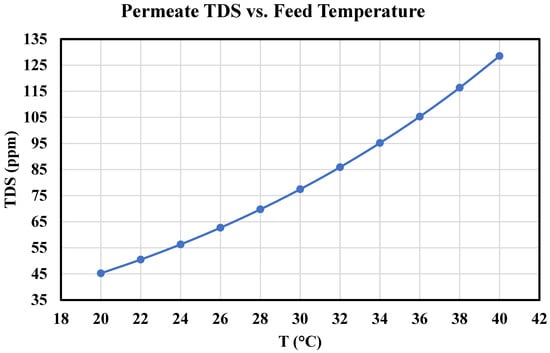 TDS versus feed temperature for simulated reverse-osmosis system.