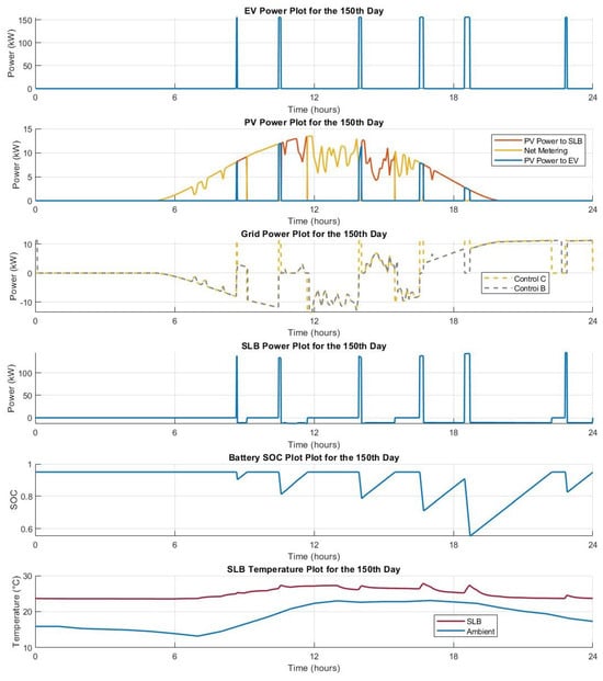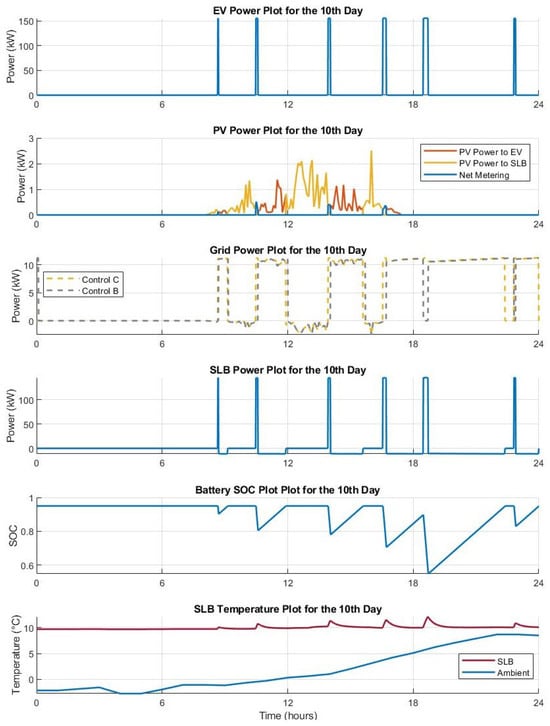 - Control A: Charge EV only from SLB. In this control strategy, the EVs are directly charged from the SLBs, and no other source is used.