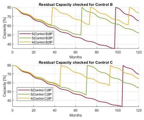 From the values of CAPEX, OPEX and revenues, the following equations are used. is the number of PV panel arrays in parallel (number of panels in series is decided as per the battery pack max voltage) and is the number of battery packs in parallel. Sizing details are explained in Section 3.