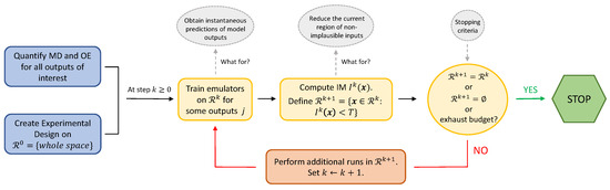 The flowchart in Figure 2 illustrates the overall methodology. In R, the hmer package [37] can be used to automate the whole procedure. The package guides the researcher into multiple waves, by automatically suggesting a new design at each wave.