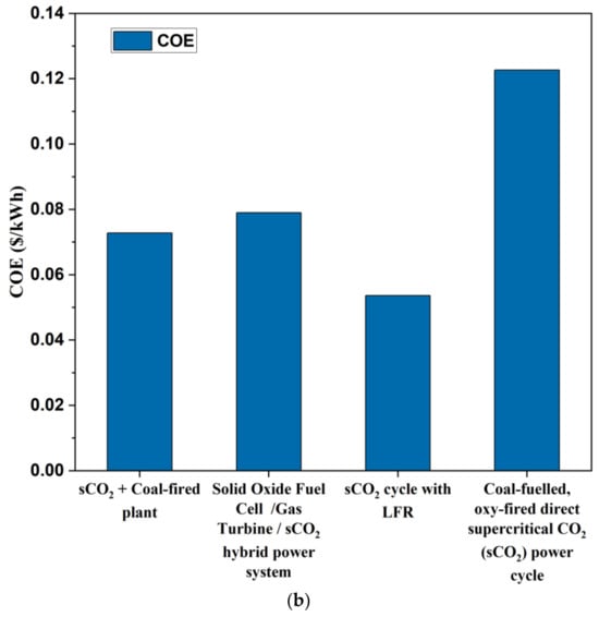 sCO2 cycles economic analysis: (a) LCOE and (b) COE.