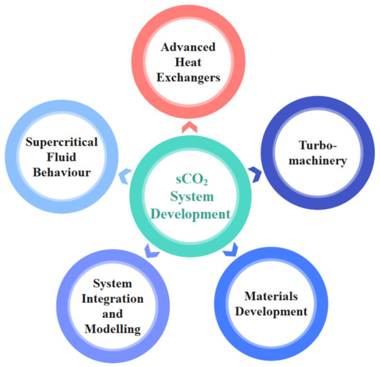 Sustainability goals are no longer an option. It is essential to take action to boost efficiency and reduce or eliminate the environmental impact of energy production. Renewable energy technologies must be significantly enhanced to achieve greater efficiency, for which sCO2 technologies offer promising advantages. Figure 12 depicts the future areas of development for the sCO2 systems.