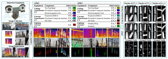 Illustration of the construction process of power equipment instance segmentation and abnormal heating detection datasets.